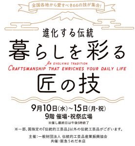 (9/10~9/15)「進化する伝統 暮らしを彩る匠の技」に出展します